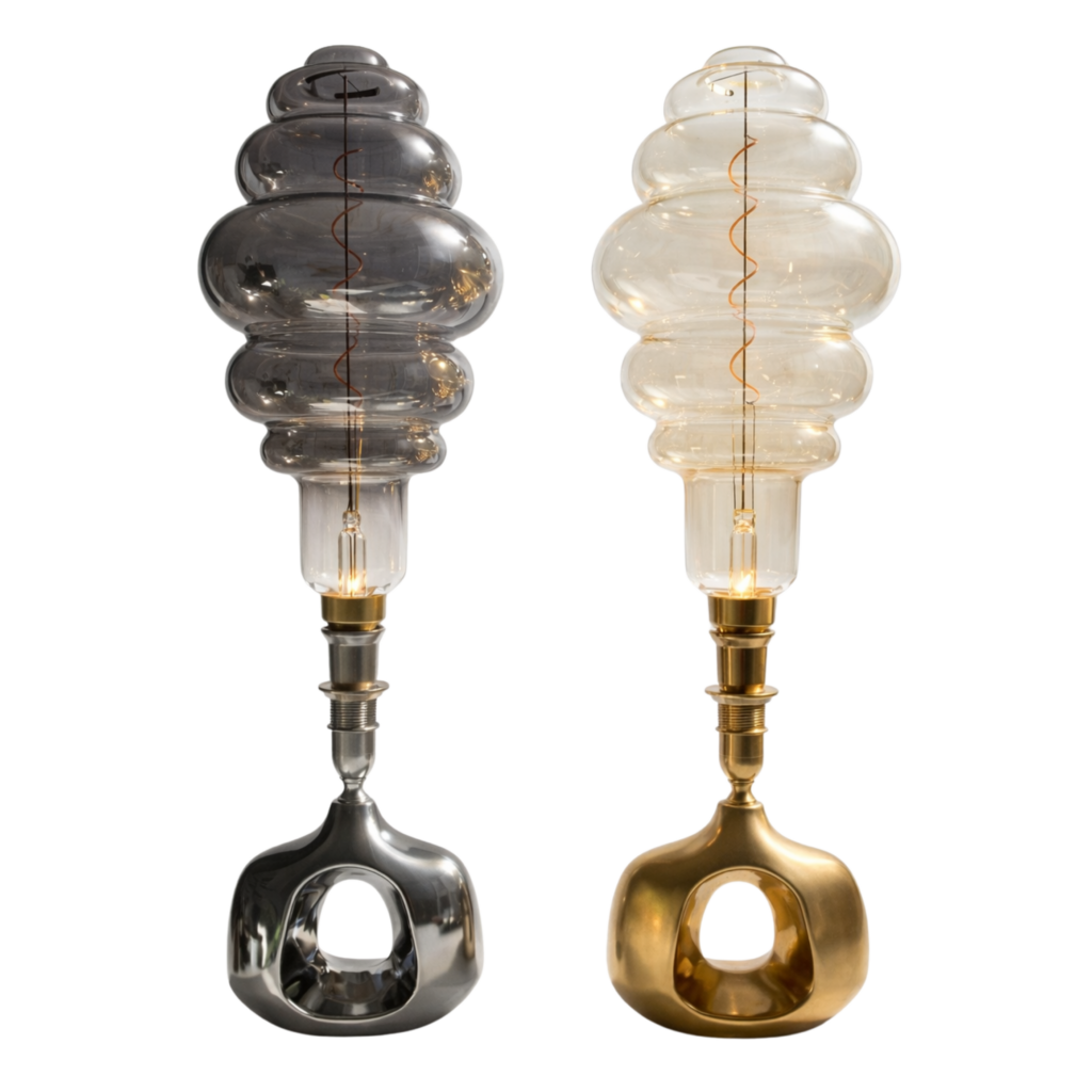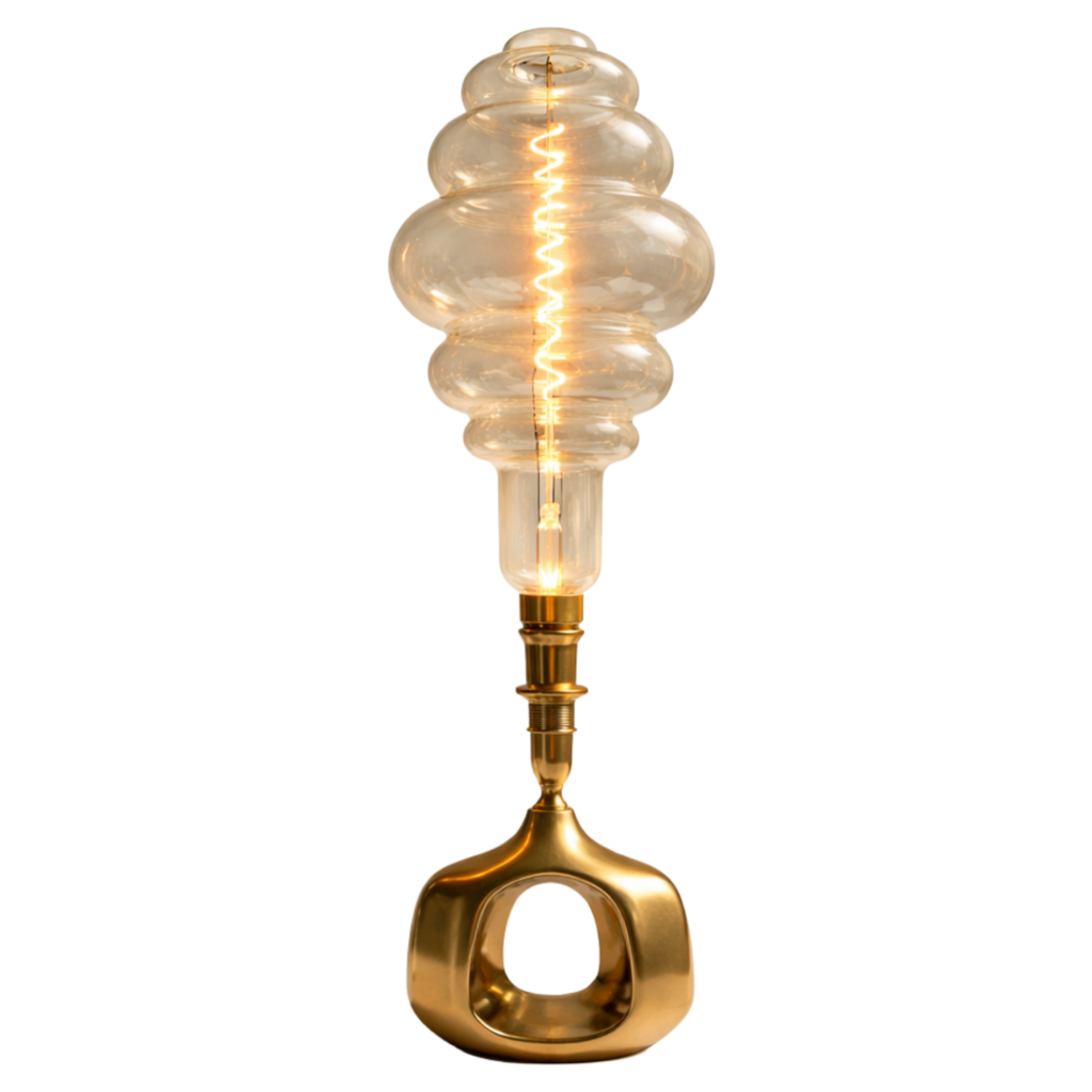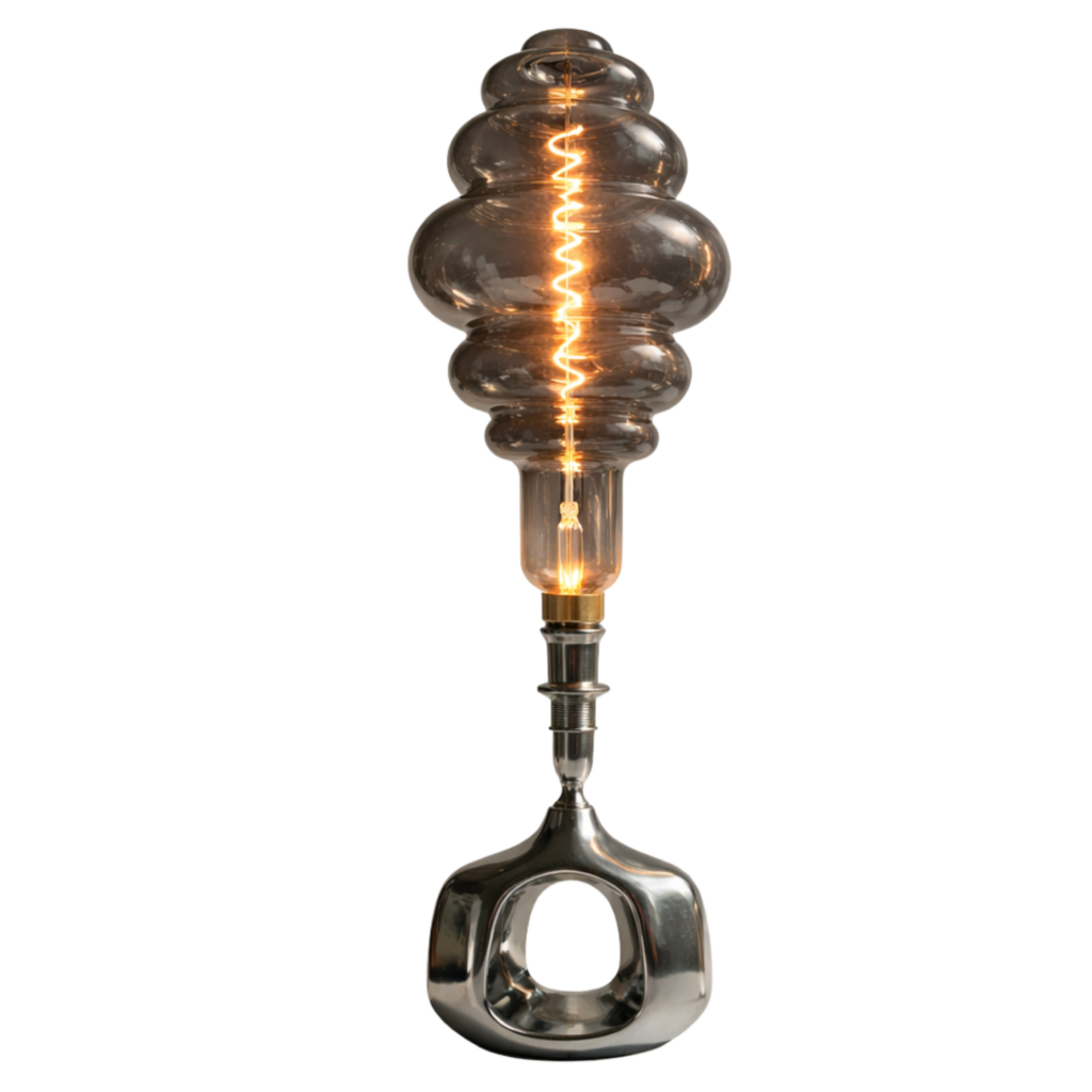 W tej wersji centralnym motywem staje się ruch światła. Spiralny żarnik organizuje percepcję — prowadzi wzrok i buduje rytm obiektu.